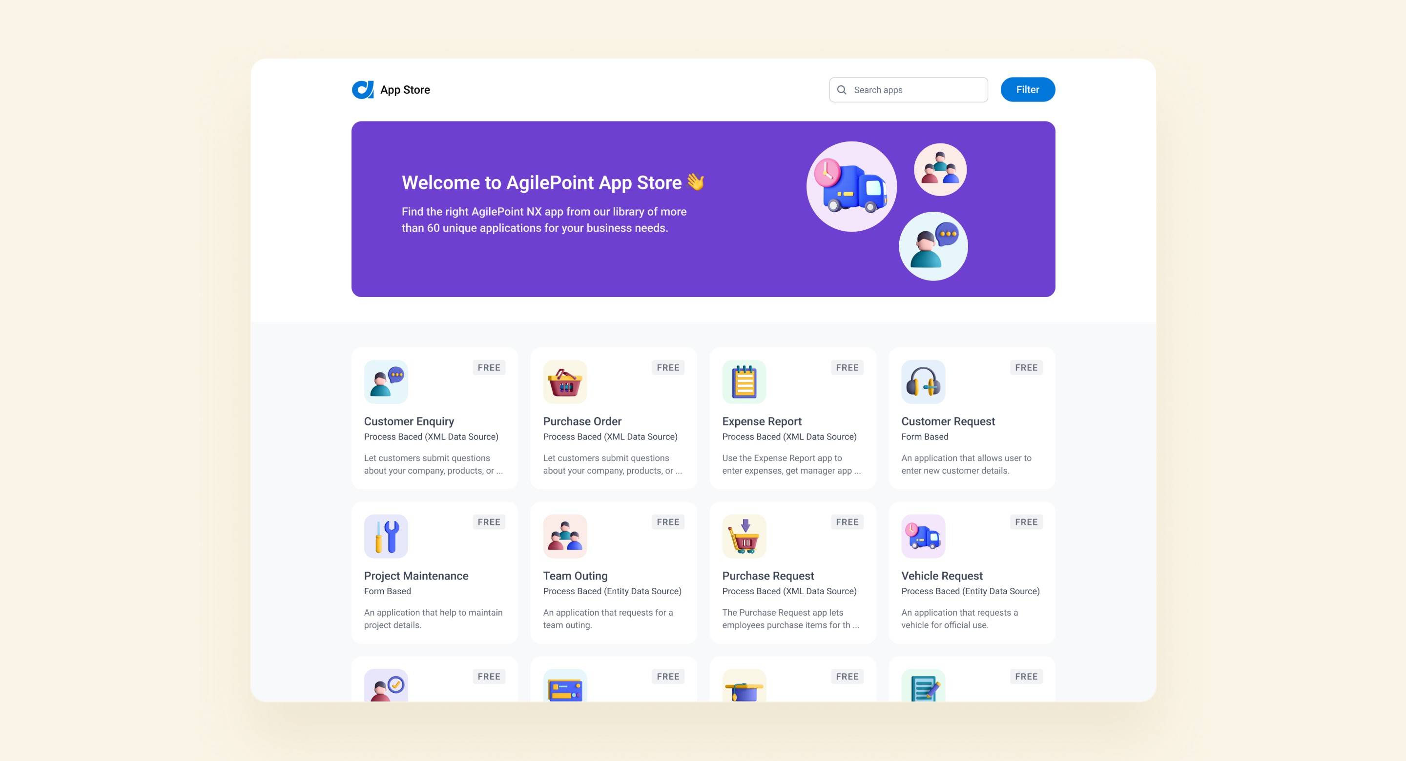 The App Store is a feature of the AgilePoint NX platform that offers theme templates for eForms. These templates can be downloaded and applied to forms, allowing users to easily customize the appearance of their forms without having to create styles from scratch. More technically skilled users can even modify the templates to further customize the look and feel of their forms on the AgilePoint NX platform.