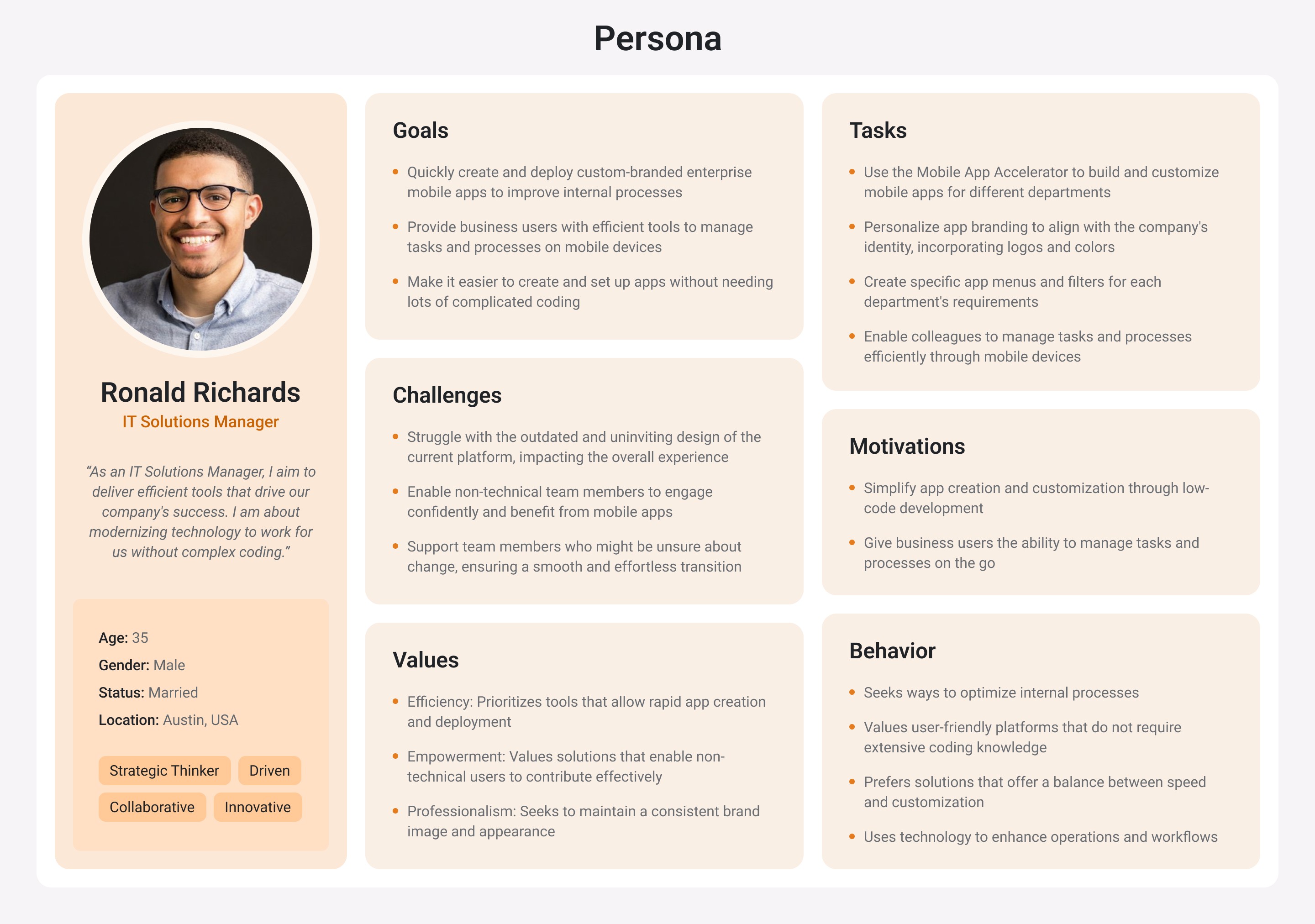 I first started by exploration of each screen of Mobile App Accelerator in detail to better understand how it works from our customer's perspective. At this stage, I worked closely with stakeholders to define the project's scope and decided to jump straight to the visual design since we kept all of the existing functionality and had a limited time frame for this project.