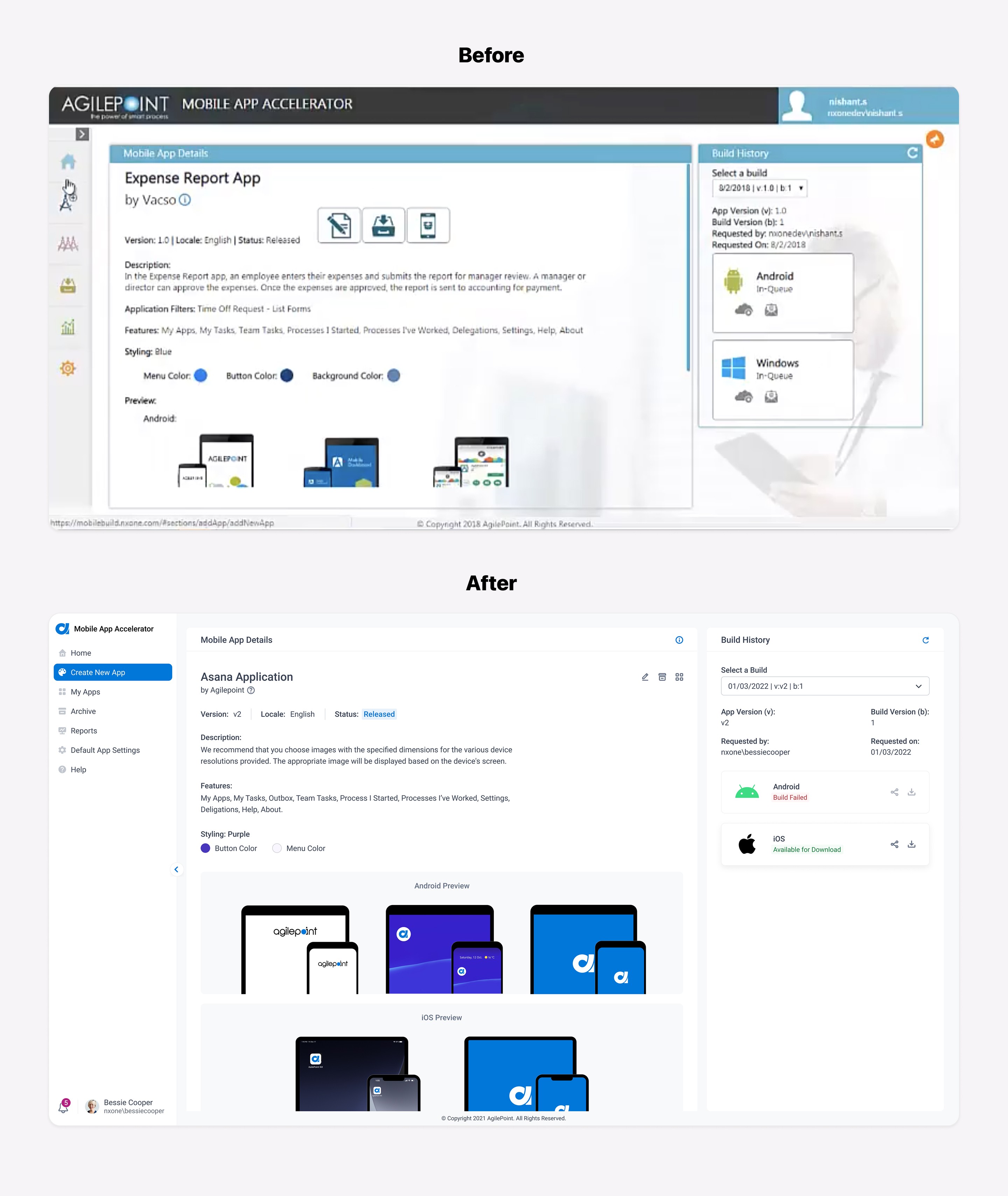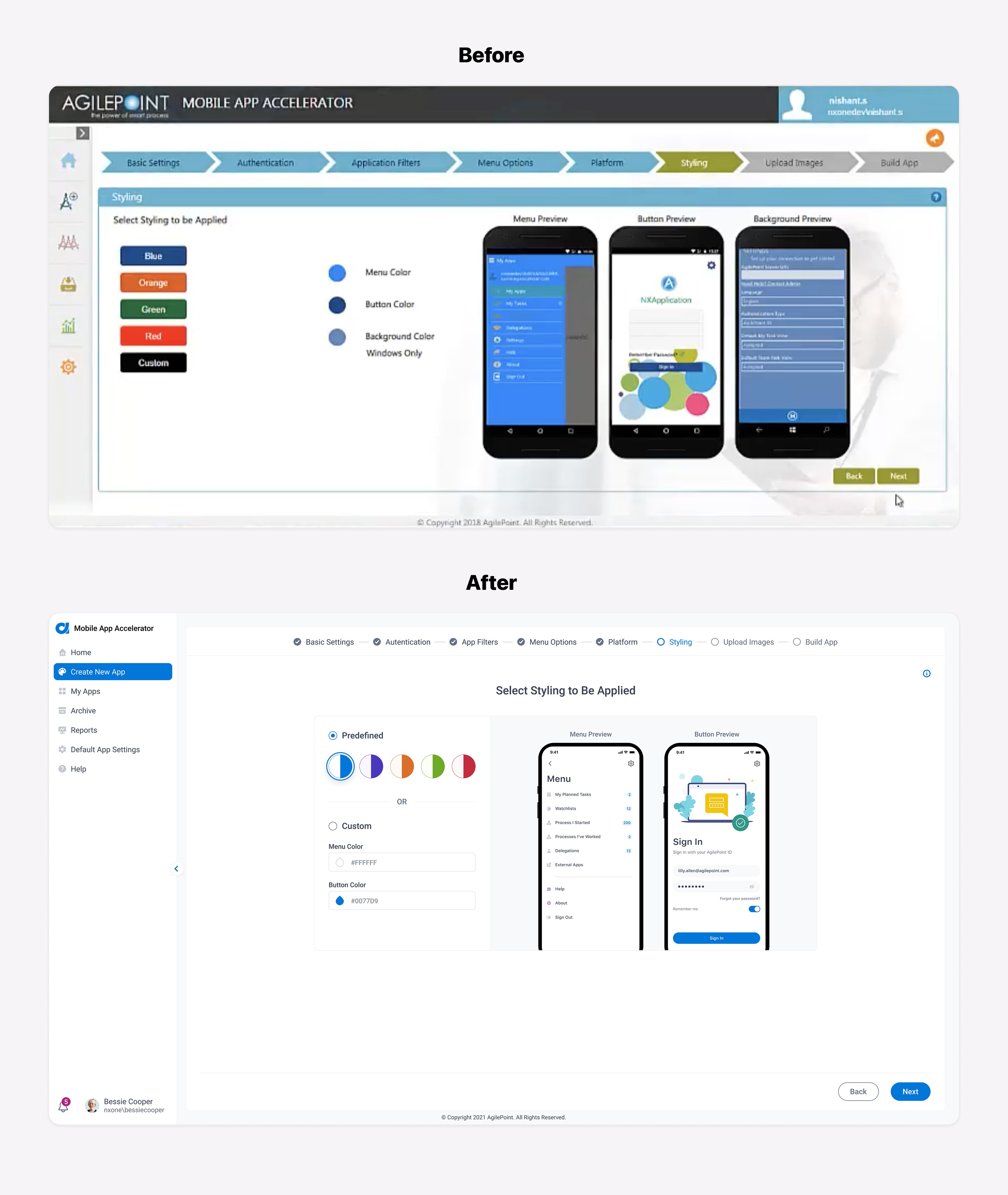 The UI needs to be updated to follow the new branding and match the rest of the AgilePoint NX product