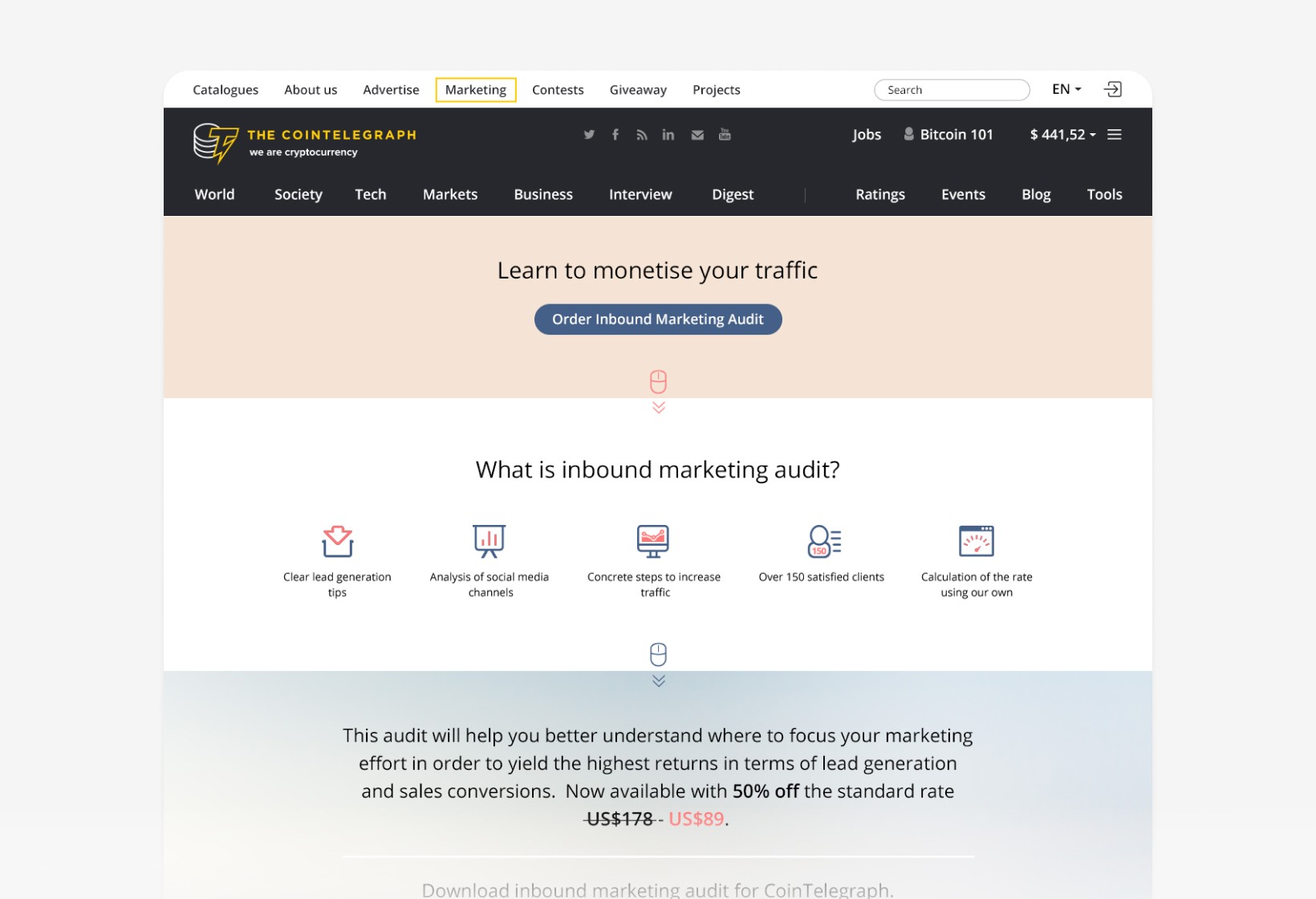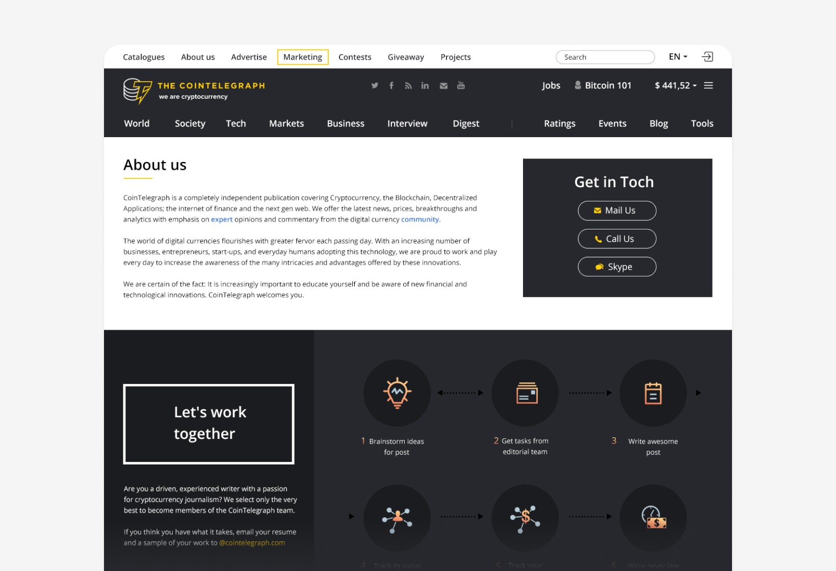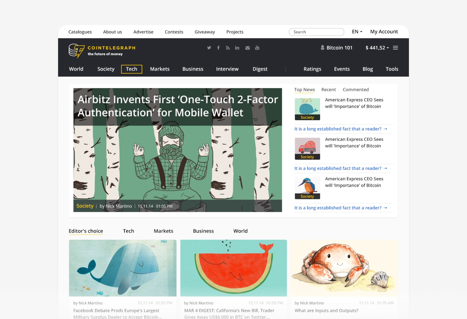 This project is a comprehensive redesign for the cointelegraph.com. It is a digital media resource covering a wide range of news on blockchain technology, crypto assets, and emerging fintech trends.