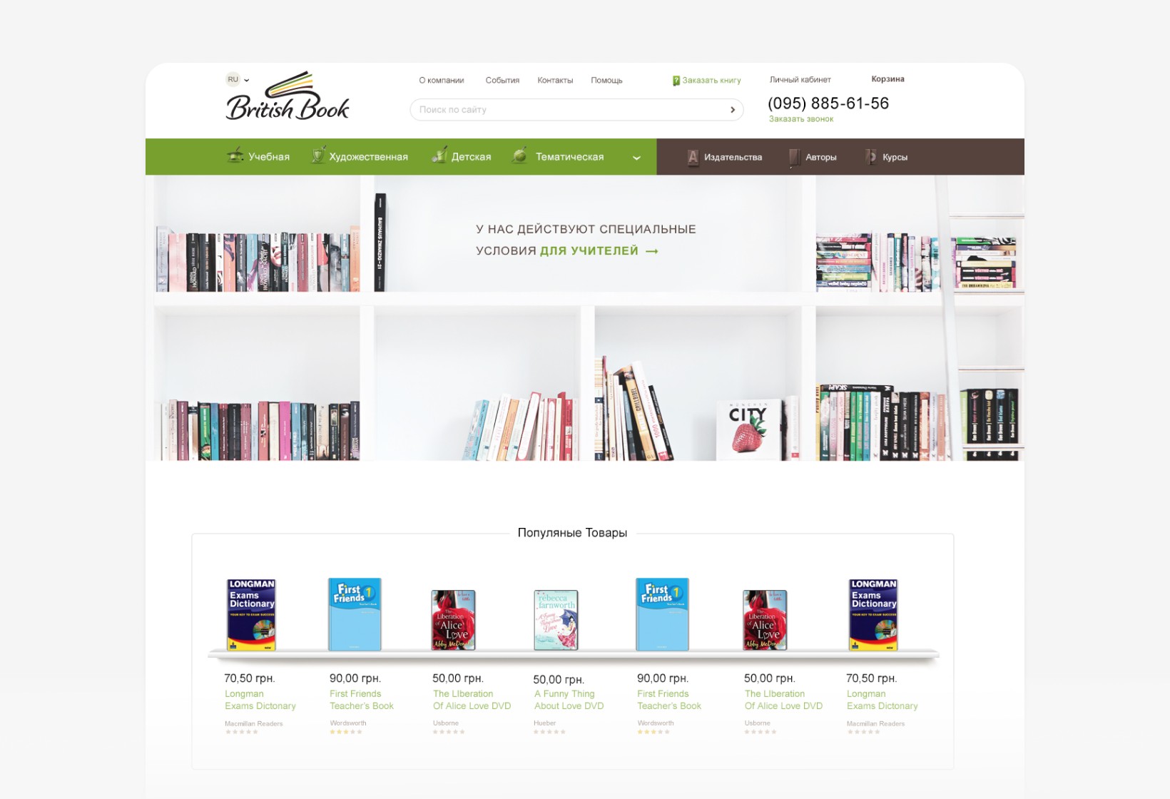 A project for a Ukrainian client: BritishBook web store, Ukraine's leading source for foreign literature and official distributor for Oxford University Press, Macmillan, Cambridge University Press, and more.
