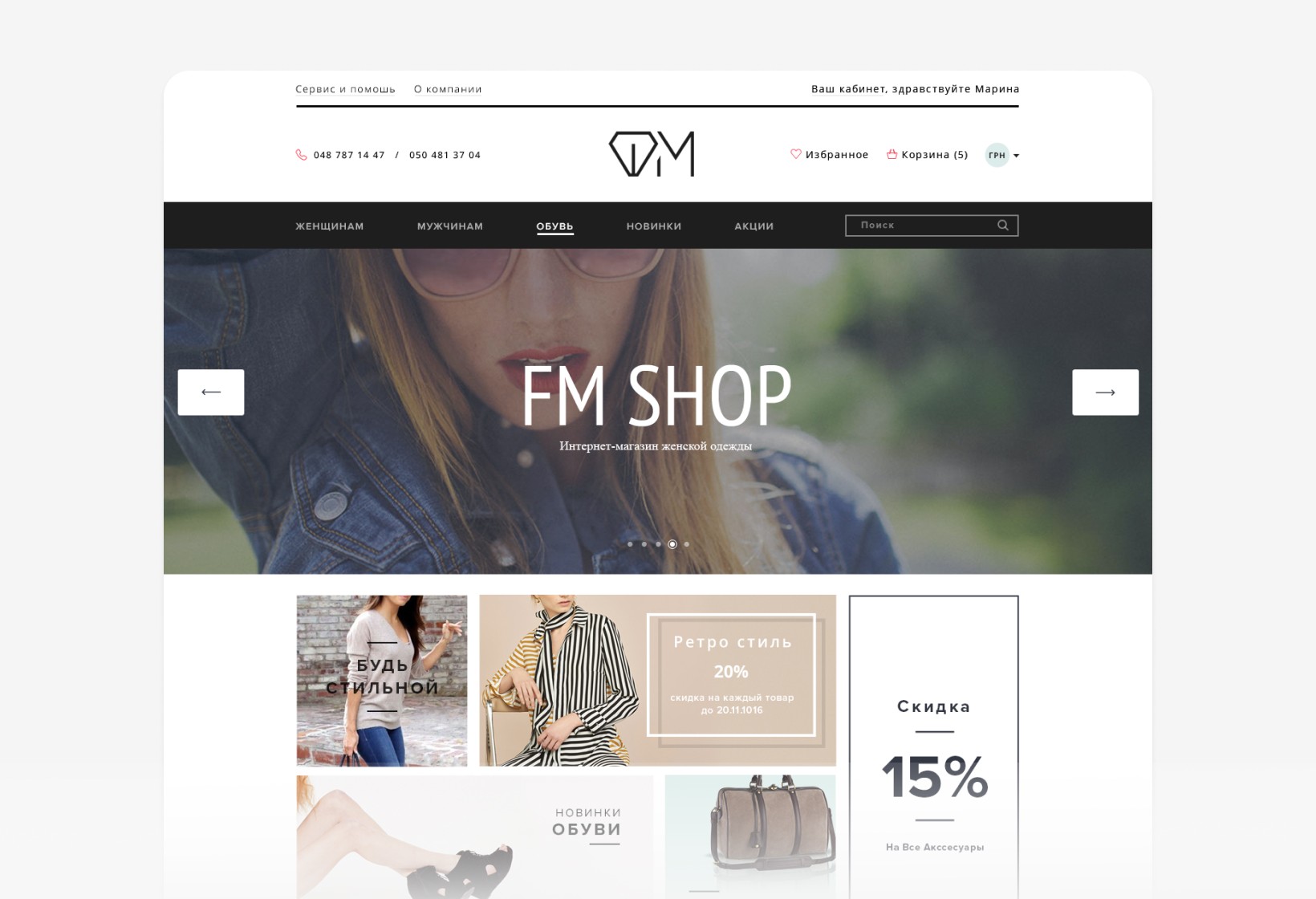 A project for a Ukrainian client: FM Shop, a specialized online store for women's and men's apparel.